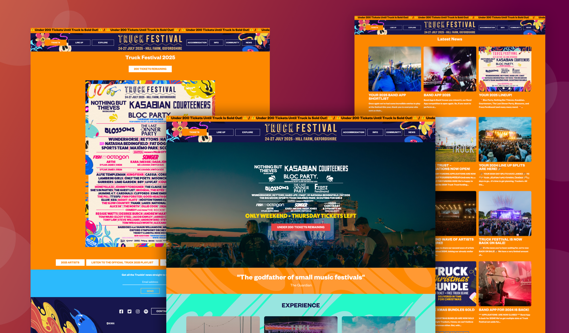 We’ve worked closely with Truck Festival across multiple seasons, offering ongoing technical support and digital enhancements to their site following a visual rebrand led by another agency. For the 2023 edition, we took the lead on a full redesign and redevelopment of the website using our proprietary festival platform, Nova. The rebuild focused on simplifying content management for the Truck team while introducing features tailored to a younger audience — including dynamic media tools and a strong emphasis on user-generated video content. The result is a robust, flexible platform built to evolve with the festival and its fans.